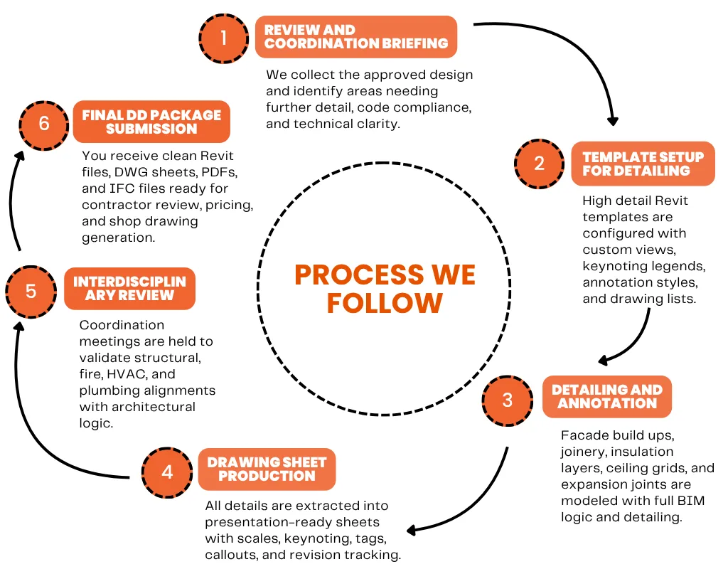 At Next Synergy Solutions, we follow a structured, collaborative BIM process designed to empower architects and designers throughout every project phase. As a leading Detailed Design Documentation Service Provider, our methodology blends precision, flexibility, and innovation to deliver high-quality results.