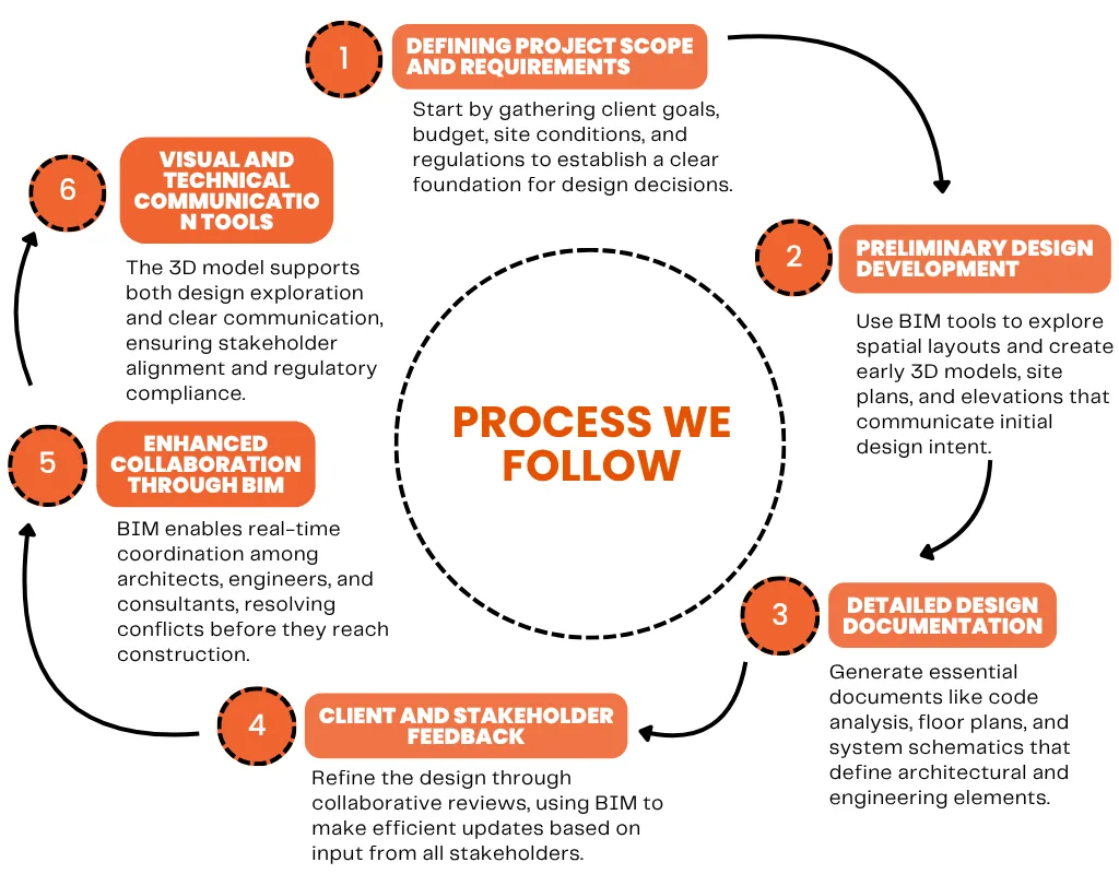 At Next Synergy Solutions, we follow a structured, collaborative BIM process designed to empower architects and designers throughout every project phase. As a leading Schematic Design Documentation Service Provider, our methodology blends precision, flexibility, and innovation to deliver high-quality results.